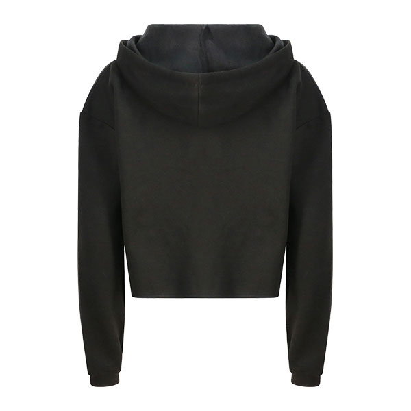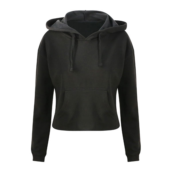Coupe décontractée Girlie. Coupe courte à épaule dénudée. Détails à surpiqûres doubles. Capuche à double épaisseur. Cordon de serrage plat en dentelle. Tissu en coton doux, parfait pour en imprimer la surface. Étiquette détachable facilement, l'idéal pour la remplacer par sa propre marque. Poche kangourou. Ourlet à bord brut à coutures à points de recouvrement. 80 % coton à fil de chaîne continu (Ring-Spun), 20 % polyester.