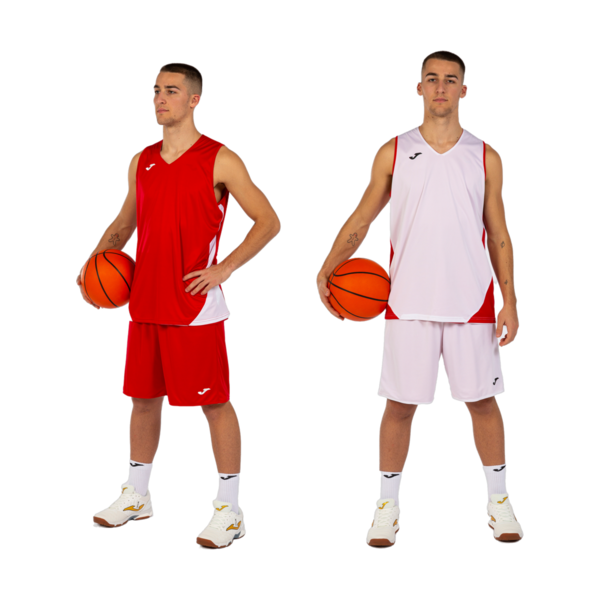 Ensemble en tissu léger composé d'un maillot et d'un short réversibles.