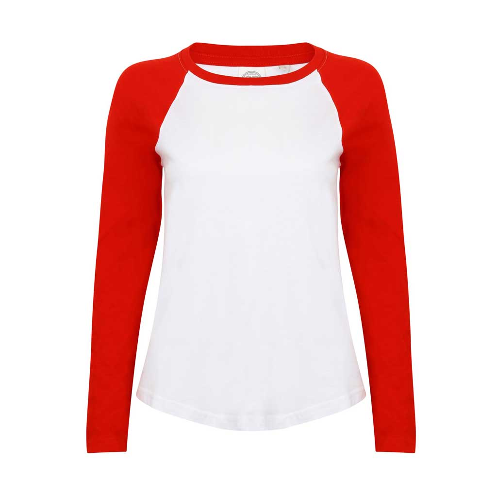 Emblématique t-shirt de baseball avec manches raglan contrastées et col côtelé avec ruban à l’arrière du cou.